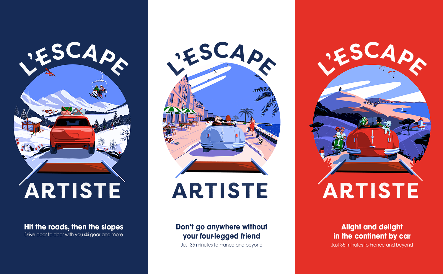 We invited everyone to be L'escape Artiste. Offering little nuggets of travel wisdom only a seasoned traveller would know about making them experts in getting away. At the height of the pandemic people were lusting to get away safely and feel the sense of adventure they had been deprived for a couple of years. Working with French illustrator Paul Sirand we create a series capturing the ease of adventuring by car with LeShuttle.